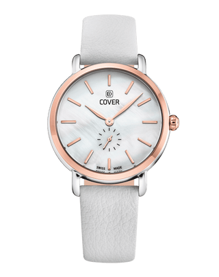 Elevate your everyday with the COVER Swiss Made Pearl Dreams Collection—a perfect blend of minimalist design and understated luxury. Each watch features a luminous white mother-of-pearl dial, enhanced by a small second indication at 6 o'clock, delivering an elegant touch to your daily ensemble.